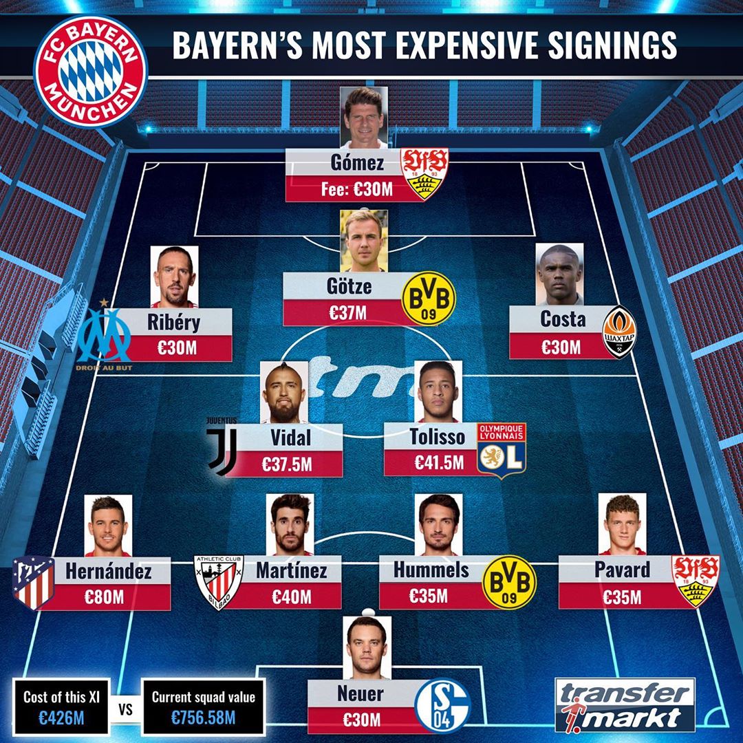 Bayern munich squad value. Bayern s total squad cost is significantly higher than their starting xi at 330m. Fc bayern munich first team squad first team squad women s team the fc bayern women represent the club in the bundesliga and women s champions league. Prediction team news tv stream odds. Midfielders sergio busquets and arturo vidal both start following suspension but arthur melo has been left out of the squad.