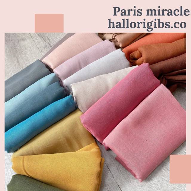 Paris miracle hijab. Karena dari dulu hijab paris udah terkenal banget dan tak lekang oleh zaman everlasting bahan seringan kapas tapi enak banget dipake adem garing lembut daa ga bikin gerah sama sekali warna warna unik pastel dan bold dengan warna pilihan warna premium dan kualitas jahit tepi standart butik jual pm. Mungkin ini hijab paris yg selama ini kalian cari krn susahnya menemukan warna2 yg unik pastel. Selain voal bahan hijab yang paling menjamur digunakan oleh para desainer dan pemilik bisnis hijab online serta jadi pilihan hijaber adalah polycotton. Para pecinta hijab paris jadoel wajib banget punya hijab series ini kenapa.